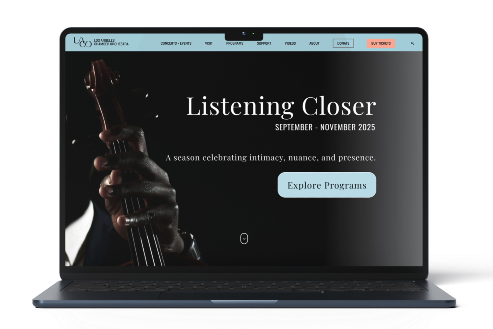 The poster introduces the conceptual season theme, “Listening Closer,” and is designed to work both in print and online promotion. The goal was to create something visually striking while still feeling refined and aligned with classical music aesthetics.